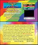 14 point Hi-gloss card stock with UV coating FRONT and BACK, FULL COLOR FRONT AND BACK. Business card size, 3.5 inch x 2 inch inch Full color FRONT and BACK heavy card stock business card. Very durable will last for years and years. Place thumb or finger on black stress chip. Wait 10 seconds, then remove thumb and note the color. Then look at the chart. The color will indicate your hand temperature. Body temperature in your hands and feet change when you are stressed and pressured. Under stress muscles tense and blood flow is restricted to the main body. Blood flow shuts down from the hands and feet and they cool or get cold. Stress Level Rule - Warm Hands Relaxed, Cold Hands Tense. Hand/foot temperature ranges over 40° degrees from a low of 60° degrees to as high as 99° degrees F. Chan